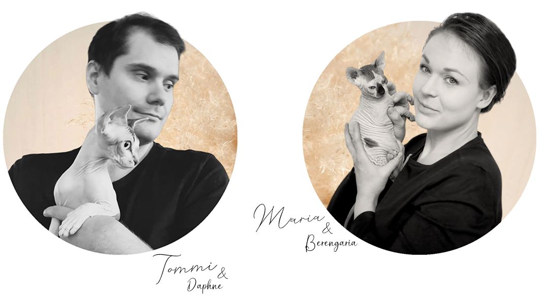 My name is Maria and I breed Canadian sphynxes in Seutula, Vantaa together with my husband Tommi. My breeding work has started in 2008 as a dog breeder under the Finnish Kennel Club (FCI), but as a second-generation breeder, I got my first contact with breeding work already as a child through a kennel in my home. Tommi has over two decades of cat experience. Pets have always been a significant part of our lives.